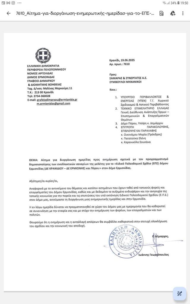 Η παρουσίαση της μελέτης του Ειδικού πολεοδομικού σχεδίου για την Ερμιονίδα και το δίκαιο αίτημα των Δημοτών μας