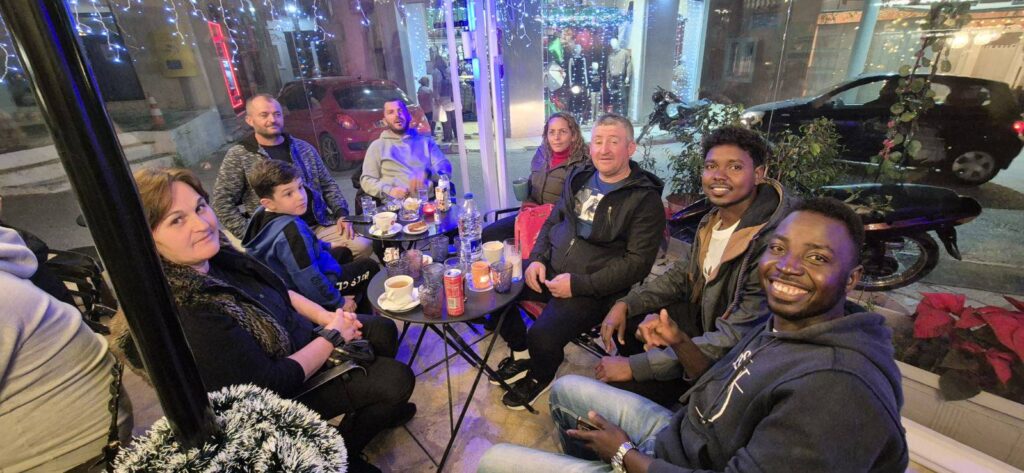 Στην συνέχεια ανταλλάξαμε ευχές, ακούσαμε αλλά και είπαμε τα κάλαντα, απολαύσαμε τα πατροπαράδοτα γλυκίσματα των Χριστουγέννων και στην συνέχεια ήπιαμε τον καφέ μας σε μια καταπληκτική γωνιά της πόλεως του Κρανιδίου.